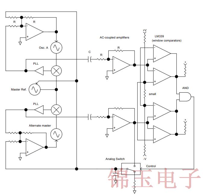 如果频率差是线性的并且可以在外部重复在该诱导效应或线性时间相关效应之后,该校正电压可用于产生a补偿信号,适当缩放的补偿应用与极性相同两个振荡器的电调谐将其频率引导相同的量,下图描绘了普通PLL和可能的自举PLL实现,PLL的校正电压与振荡器所存在的频率差成正比解锁(假设线性调整),通过自举两个振荡器,锁相环保持不受影响,线性扰动是除去,也可以补偿非线性频率扰动,但补偿信号将需要非线性处理而不是简单的缩放.