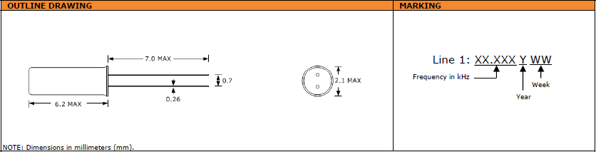 频率:32.768KHZ 尺寸:2.0 x 6.0mm