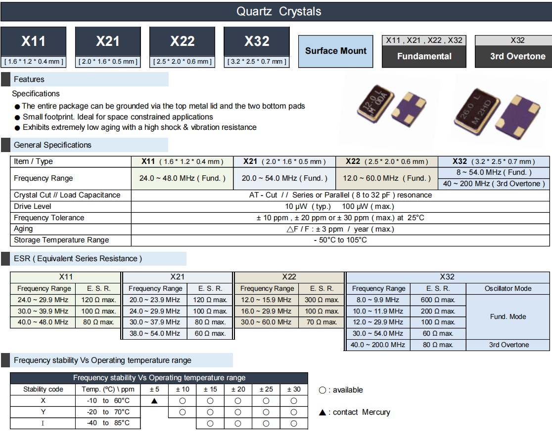 | Frequency Range | 24.0~48.0MHz (Fund) | 20.0~54.0MHz(Fund) | 12.0~60.0MHz(Fund) | 8~54.0MHz (Fund) |