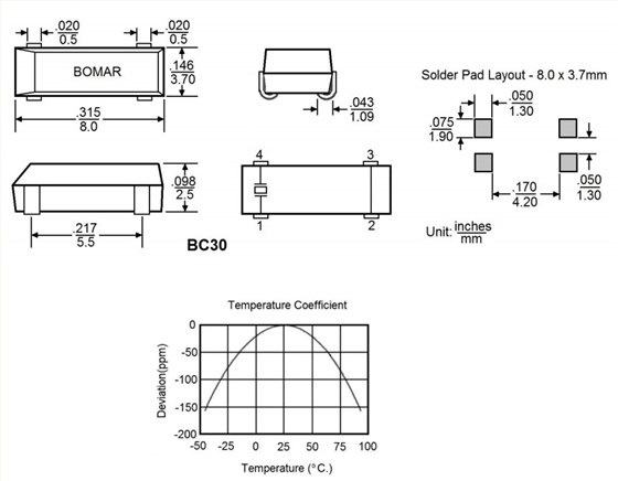 博马尔8038mm晶振,BC30CCD112.5-32.768K,实时时钟6G晶振,美国进口晶振,Bomar博马尔晶振,型号:BC30,编码为:BC30CCD112.5-32.768K,频率为:32.768K晶振,小体积晶振尺寸:8.0x3.7x2.5mm陶瓷封装,四脚贴片晶振,无源晶振,石英晶振,石英晶体谐振器,无铅环保晶振,SMD石英晶体。具有超小型,轻薄型,良好的抗冲击性和耐热性。应用程序包括:移动通信、芯片卡、实时时钟,无线通信,智能手环晶振,仪器仪表设备,钟表电子,智能门锁,电脑主板,数码电子等应用。