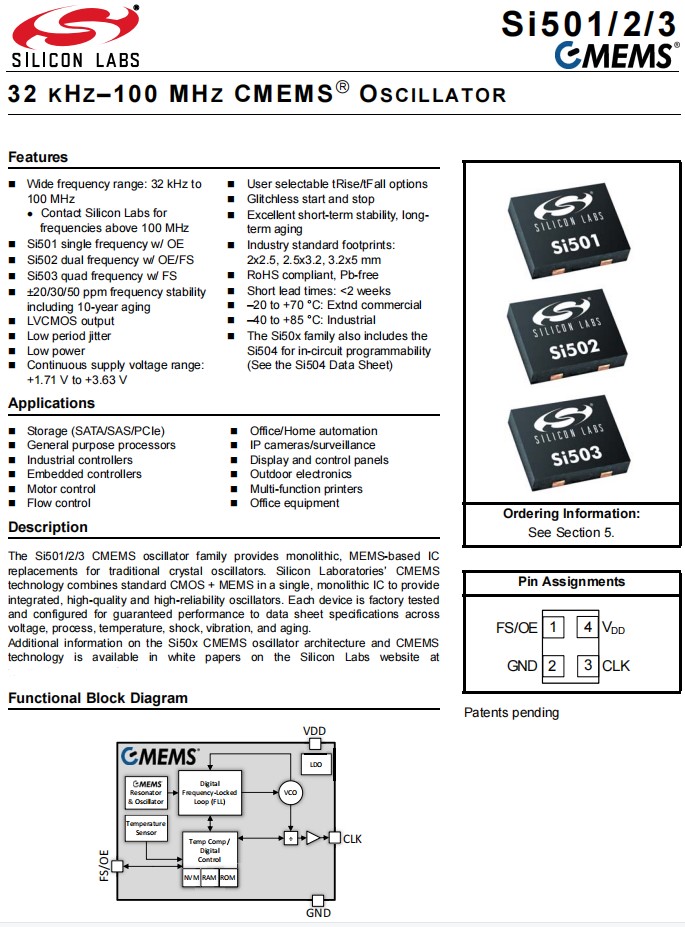 | 501BAA50M0000DAG | Silicon晶振 | Si501 | 50MHz | 3.3V | ±50ppm | 4-SMD, No Lead |